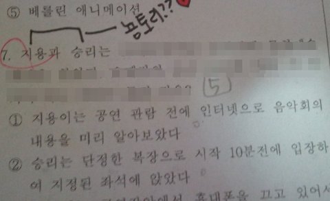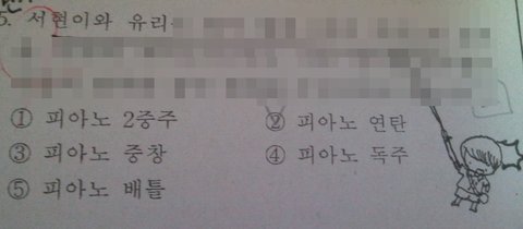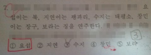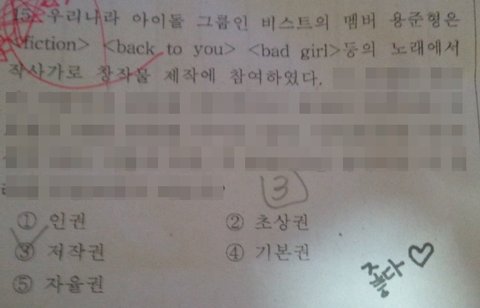 어제 시험으로 음악을 시험봤는데 음악시험지에 아이돌이름이 좀 있어서 이렇게 들고왓서욯!!