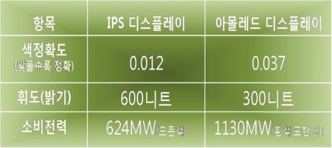 0.037을 기록한 아몰레드보다 3배 이상의 정확한 색 표현력을 가진 것으로