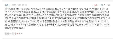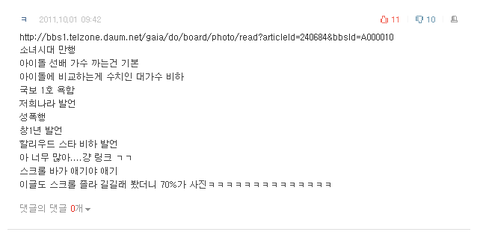 말할것도 없이 댓글은 다 소녀시대를 비하하고 있었고요..