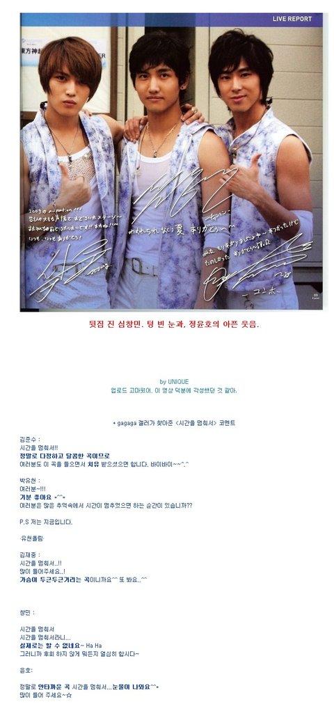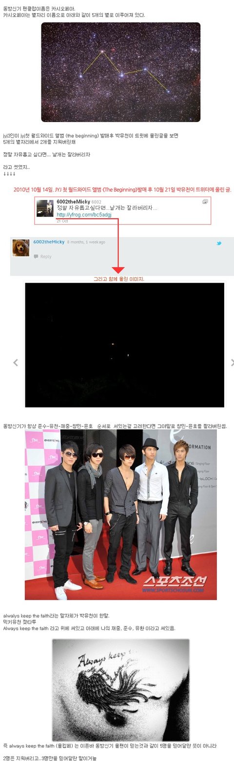 이것 보다 할말이 많지만 여기서 그만할게요 3인팬분들이 인정하셔야할거 주관적으로 생각해서 올린거니까 욕은사절하겠습니다 정말 제이와이제이를 좋아하신다면 이제 그만 동방신기를 걸고가지 마세요. 그럼 이상 현 동방신기의 팬이었습니다....