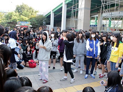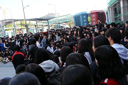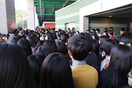 그런데 갑자기 저쪽 조그만 슈퍼앞에 엄청난 인파들이 몰려가기 시작함