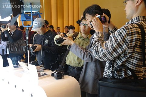 그리고 이 날 저녁 7시, 또 한번의 신제품 발표회가 양재역 L타워에서 열렸습니다. 각지에서 모인 참가자들은 파워블로그, SLR클럽, 클럽 NX 등 카메라에 대해 ‘일가견’이 있는 많은 분들로 구성되어 있었는데요, 참가자들은 간단한 저녁식사를 하며 NX200에 대한 정보를 교환하고 신제품에 대한 기대감을 나타냈습니다. 공통된 관심사로 인해 분위기도 더 화기애애~ 발표회장은 후끈! NX200에 대한 뜨거운 관심과 사랑을 느낄 수 있었습니다.