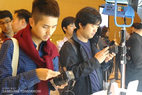 신제품 설명회는 제품 소개, 기자회견 순으로 진행되었습니다~ 신제품이 나왔다는 소식을 듣고 설명회장에 들어서자마자 저희 스토리텔러도 직접 NX200을 체험해 봤는데요, 너무 새로운 경험이었습니다~! 평소 카메라에 대해 많이 알고 있진 않지만 NX200 은 꼭 스마트폰 같았거든요~ 카메라를 다루기 어려워하는 사람들도 쉽게 다룰 수 있어서 스토리텔러도 손에서 한동안 놓지 못했답니다.