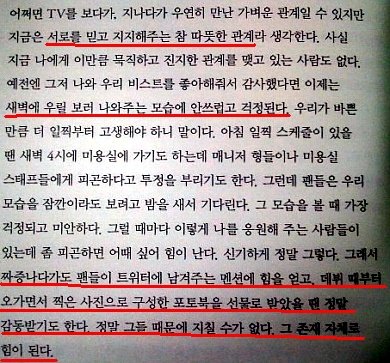 언제나 늘 웃으면서 저렇게 팬서비스만 하는 애들 아니에요.