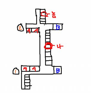 1번 2번이 입구고 A가 엘레베이터 B가 계단