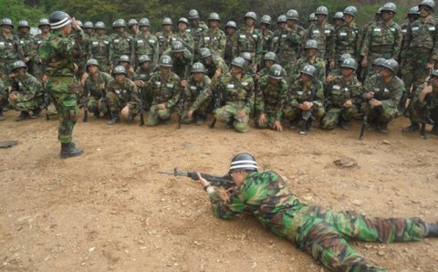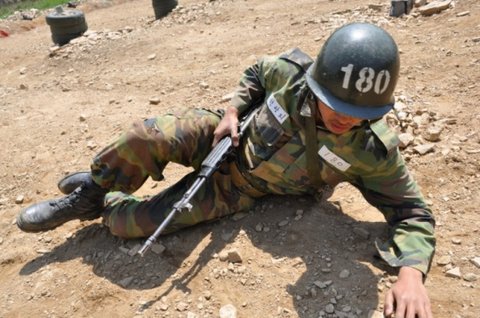 저러면 조교한테 혼납니다 ㅋ 총구 땅에 끌지말라면서 ㅋㅋ