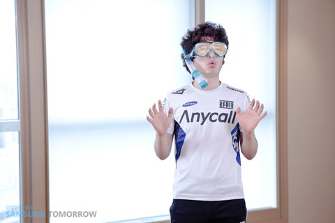물안경을 쓰고 코믹한 콘셉트를 소화하는 김기현 선수의 모습이 보입니다. 촬영 슬레이트를 치고 사각지대로 피하는 스텝분의 모습이 재미있어서 같이 찍어봤어요.