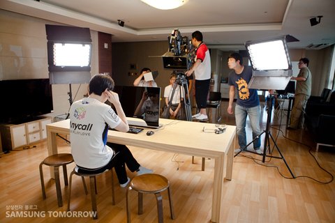 지난 8월 9일, 삼성게임단 ‘칸(KHAN)’ 숙소에서 삼성전자의 신제품 3D 모니터 싱크마스터 시리즈9 홍보 영상 촬영이 있었습니다. 3D 모니터라는 콘셉트에 맞춰 이번 영상 역시 2D와 3D 두 종류의 영상으로 만들어졌다고 합니다(영상을 보고 싶으신 분들은 Click!).
