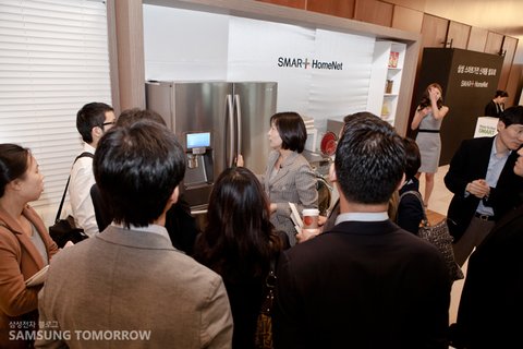삼성전자는 '스마트홈넷'을 시작으로 LCD 디스플레이와 무선통신 기능을 제품에 내장해 기기 간, 기기와 외부, 기기와 사용자를 연결하는 어플라이언스 솔루션을 구축하고 제품에 적용해 나갈 예정입니다.