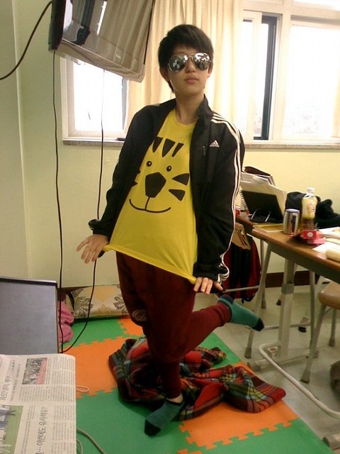 사이버틱한 선글래스와 포인트는 호랭이양말