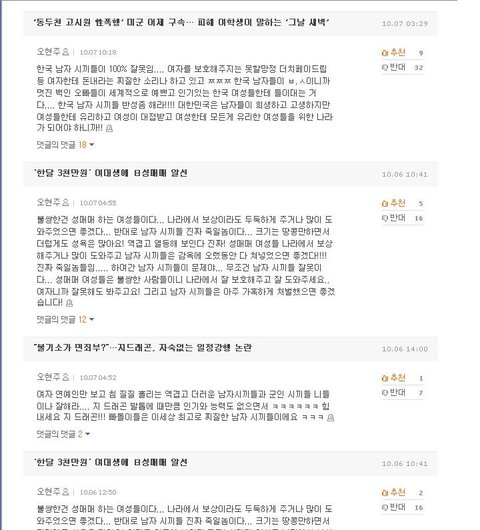 여성인지 남성인지는 잘 모르겠습니다만 댓글들이 하나같이 남성혐오증을 보이는 걸로 봐서는