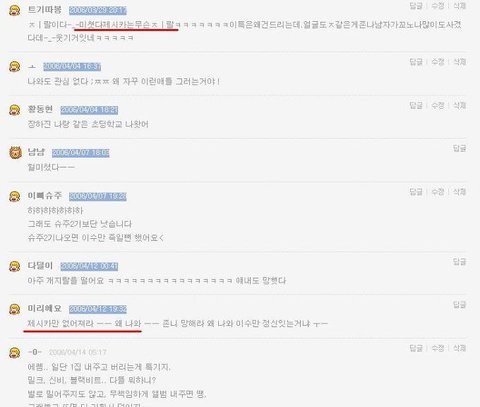 소리질렀구요. 그때 팬들의 반응은 "저ㄴㅕㄴ 왜 우리한테 욕해?" 다 이런식이였어요.