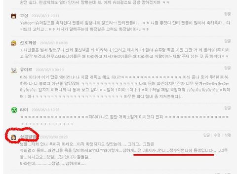 시간이 지날수록 팬들의 욕설은 도를 지나칠정도로 심해졌습니다. 그리고 몇일후. 사건이 터진거예요.