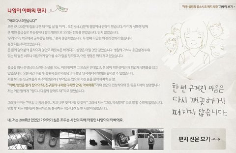 위에 나영이아버지 편지 링크로 들어가셔도