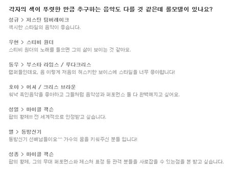 다른 롤모델 가수는 국외인데 유일하게 국내가수이네요.