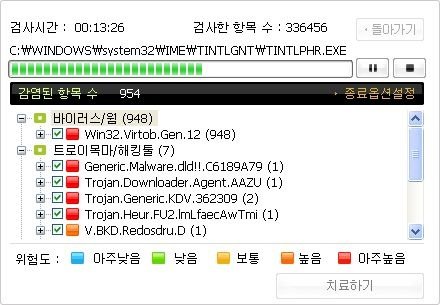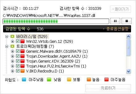 알약에서 바이러스가 발견됬다고 띵똥띵똥거림