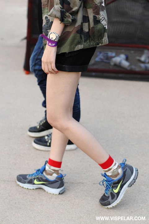 역시 마음껏 뛰어놀아야하는 파티는 운동화!!! 작년부터 부쩍 유행햇던 나이키 페가수스+ 27 트레일 슈즈와 양말의 조화도 너무 좋아요. 카모플라주(군복에 사용되는) 패턴과 레드 컬러의 조합은 100점이에요 역시.