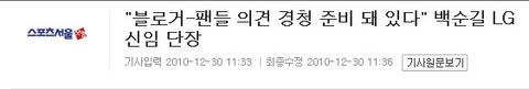 따라서 언론의 지적이 오자 LG측은 "게시판 운영자가 휴가"라는 말도안되는 말을 하고있습니다.