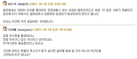 불만을 표출하자 공식홈페이지의 팀게시판을 폐쇄했습니다.