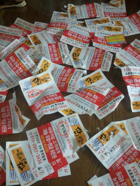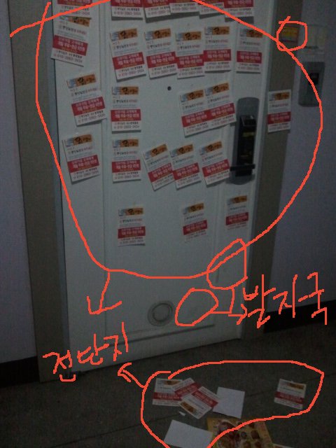 근데 이상한게 저희 대문이 흰색인데 막 빨간전단지 같은 게 수십장이 붙어있더라구요.그것도 한 군데 전단지요.전 맨 처음에 무슨 불법 압류인 줄 알고 뭐냐 했더니 신문 전단지 더라구요.