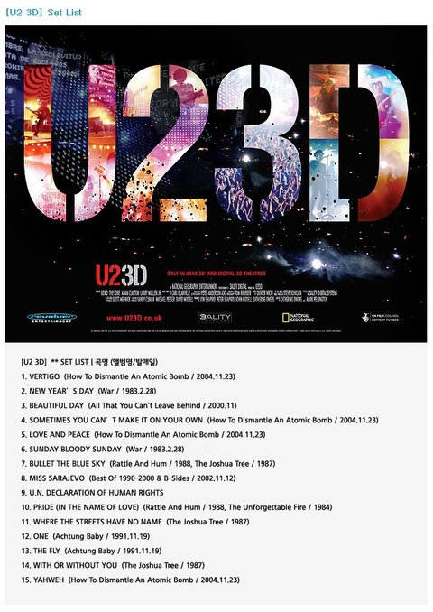 <U2 3D>가 한국에서 개봉한다는 소식을 들었다.