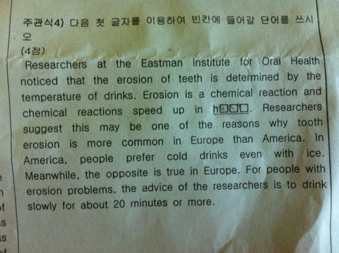 다음 첫글자를 이용하라고해서 h있는거 보고 eat 가 빈칸에 들어가야하는 걸 알았으니 이미 이용한거고 빈칸에 들어갈 단어를 쓰라고 했음ㅋㅋ빈칸도 세칸 줬음 그래서 나님은 eat를 썻음