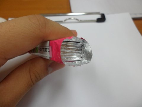 ▲ 안에 들어갈 내용물을 제조해야 하기 때문에 껌 알맹이의 길이를 잽니다 ㅋㅋ