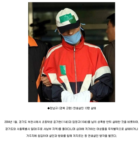 ◆유영철(전북 고창) 연쇄살인 21명 살해