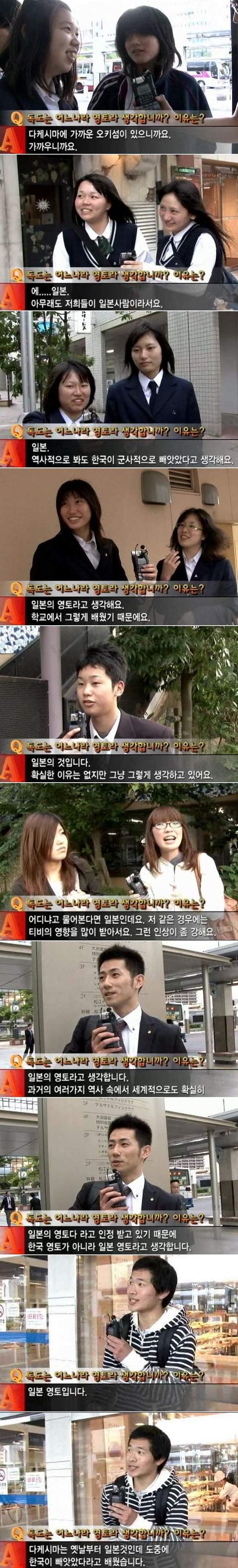 이렇게 계속 교과서로도 , TV로도 이렇게 배우고 알려주니까 자기네땅인줄 아는 사람들도있습니다.