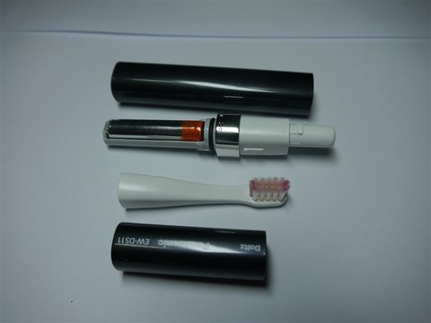 음파진동칫솔 포켓돌츠는 마스카라 모양의 디자인에 5가지 컬러(블랙, 레드, 오렌지, 핑크, 실버)로 구성되어 있어요