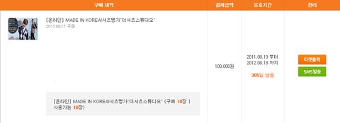 쿠폰번호는 일단지우고 올립니다. 보시다시피... 305일이 남았다고 뜨구요.