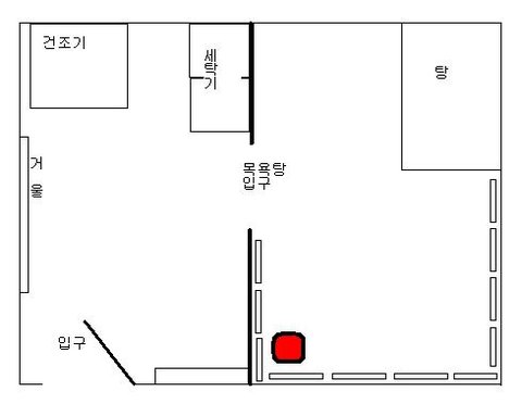 빨간색표시 해놓은 곳에서 샤워하는 소리가 들렸다함.