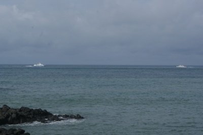 파도에 정신이 팔려 동영상을 찍고 있을때 옆에 지나가는 유람선.