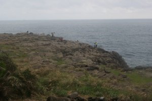 커플들이 외돌개를 배경으로 사진찍으려고 비켜달라고한다.