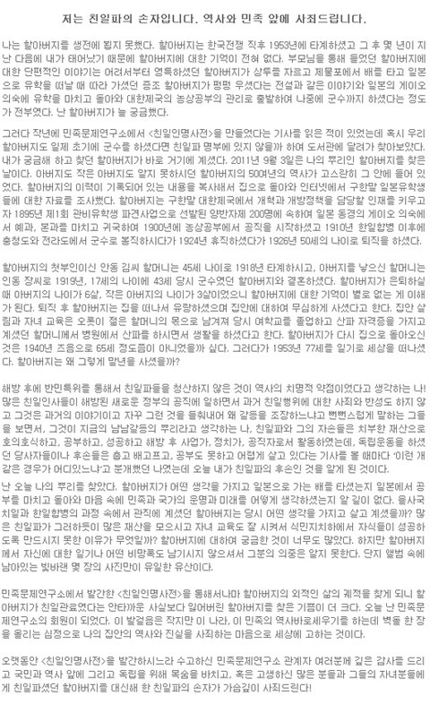 역사와 민족 앞에 사죄드립니다’라는 제목의 글이 올려졌습니다 !!!