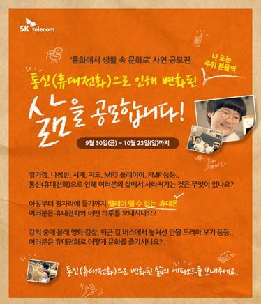 SK텔레콤에서 통신(휴대전화)으로 변화된 삶의 에피소드를 공모한다고 하는데요.