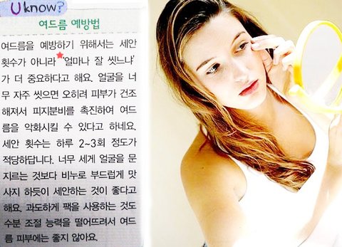 더불어 한끝 영어 문제집의 이 지문 옆에 여드름 예방법 노하우가