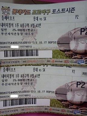 얼마전 친구가 휴가를 나와서, 플레이오프 롯데 vs SK 의 사직2차전 경기장 표를 구했다며 같이 직관하러 가자고 했습니다. 흥분한 저와 제 친구 총 3명은 그렇게 10월 17일날이 밝아 오길 기다렸지요,그리고 17일날, 오후 5시쯤, 저희는 아시아드 '홈+'에서 경기를 보며 섭취할 알코올과 고칼로리음식을 챙겨 6시에 입장을 하러 갔습니다. 입장티켓검사를 하고 즐거운 마음으로 롯데의 승리를 기원하며 관중석을 안내해주시는분께 물어 찾아갔고, 그렇게 ""내야지정석 1루 A가구역 H열 41~43번" 좌석에 몸을 실었죠,안타깝게도 치어리더분들과 응원단장 형이 계신 단상 이 저희 뒤쪽이라서, 몸과 목을 180도 뒤돌려 보는순간, 정말 꿈에 그리던, 꿈에서나 만나봤던, 현실에는 존재할것같지 않았던, 그런 청순한 모습에 아리따운 여자분과 옆에는 직장동료로 보이던 여자2분과 남자1분[중요하신분☆★☆]이 야구를 보고 계셨습니다와,,,정말 야구를 보면서 자꾸 생각이 나서, 응원단상쪽을 보는척 하며 고개를 뒤로 돌려 그 여자분을 살짝,살포시 훔쳐 보았습니다. 롯데와 SK가 투수전 양상을 벌이며 빠른 게임의 진행과 부산팬들의 뜨거운 응원문화와 함께 저의 몸은 알코올로 조금씩 체워져 갔고, 제몸도 점점 앞과 뒤를 번갈아보게 되었습니다. 그렇게 어느덧 5회인지 6회인지,사람들이 조금 많이 나가시는 타임이 있어서 저와 제친구도 화장실을 나가려는데, 가방을 들고 갈지 두고갈지 고민하다가 제가 문득,