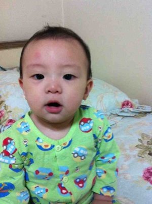 애기 종아리에 알있는거 첨봤음. 엎드려뻗쳐, 호기심 발동하면 다다다다다ㅏㅏㅏㅏ 마하의 속도로 기어감. 짠언니가 잠깐 한눈판 사이에 침대 모서리에 이마를 꽁 박았음. 저 이마에 빨갛게 된 부분이 그 자국임..