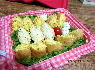 데코는 치커리 몇장을 깔고 가지런하게 유부초밥을
