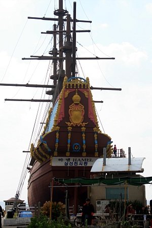 용머리 해안 근처에 하멜표류기의 배를 전시해놓은 곳이 있었음!