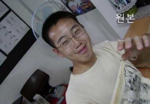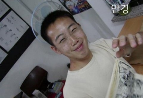 이 약간은 촌스러운 학생의 안경을 벗겼습니다.