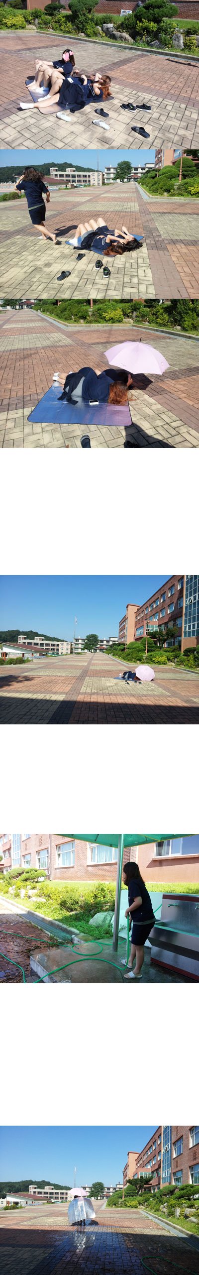 폭염쩌는날 점심시간에 친구들과 깔판을 가지고 밖에나가서