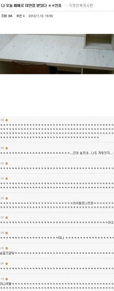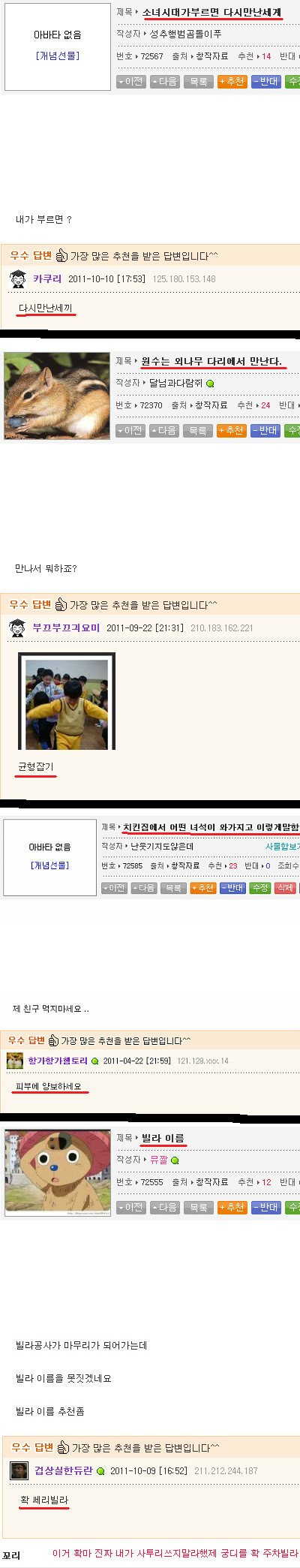 난 당신이 취미로 글을 올리든 관심받으려고 올리든 어떤 실수를 했든 상관하지않습니다 중요한 것은 당신의 글이 날 웃게한다는것입니다. 앞으로도 웃겨주세요. 항상 보기만하다 댓글 처음 달아보네요^^ 날 댓글달게한 당신에게 용기를 주고 싶었습니다. 힘내요~