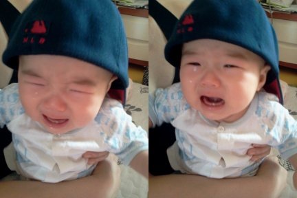 삼촌 모자쓰고 좋아하다가 눈가려지니 대성통곡함