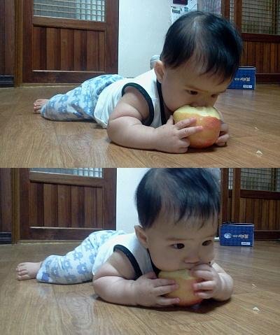 사과보고 기어가서 먹고 먹고 ㅋㅋ 메론 파인애플 무슨 과일이든