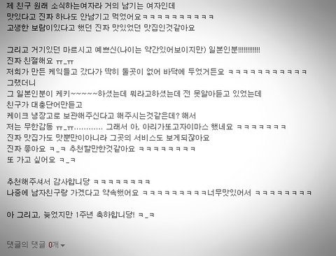 제가 소개해준곳을 요로콤 잘 다녀오신 후기글을 써주시다니 정말 폭풍감동