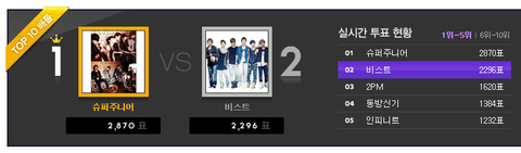 저도 슈주에 한표 하고 왔네여!~ 초반이지만 비스트랑 박빙~