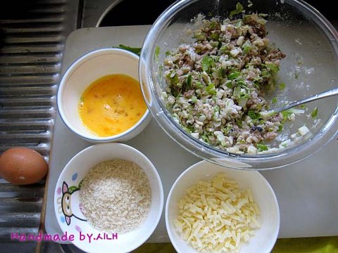 동그랗게 만든후 모짜렐라치즈넣고 다시 동그랗게 계란묻히고 빵가루 폭폭[