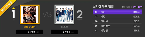 슈주랑 비스트랑 첫 날부터 각축이네여 ㅋ